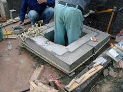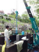 夫婦墓の傾き直しに行きました。クレーンがどうにか届く距離での作業です。同じ墓地へ来週施工する、先祖墓の下回りの設置も同時に行いました。