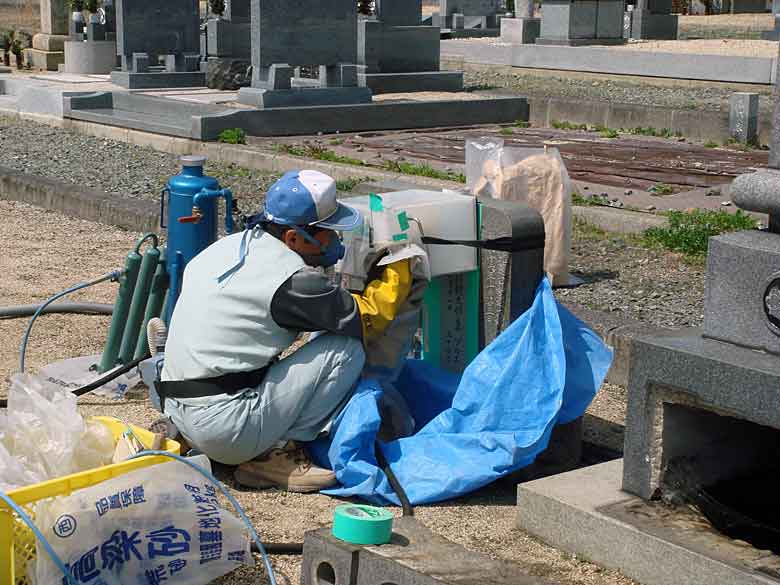 先日の蜂の巣の墓の納骨室の掃除と墓誌の字彫りを行いました。熱風と火により蜂蜜がドロドロになりましたが、綺麗に拭き取りました。これで無事に納骨していただけると思います。