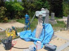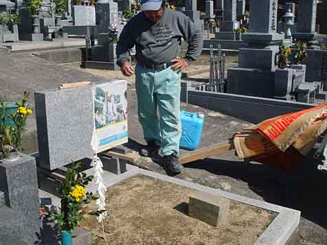 字彫りを終えた墓誌を納め、墓のペンキ入れを行いました。