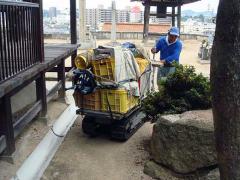 現場字彫りに行きました。字彫り箇所の掃除をして、ペンキの重ね塗りをしました。