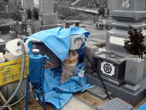 ここのところ現場字彫が続いてます。ペンキ入れをし、納骨室の水はけを良くしました。