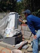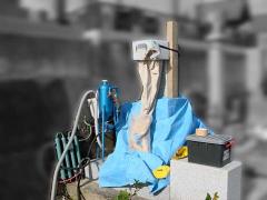現場字彫りに行きました。ペンキの重ね塗りをして、物置石の設置をしました。