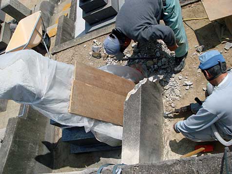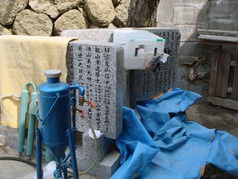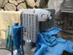 現場字彫りと汚れた字の中を洗い、ペンキ入れを行いました。