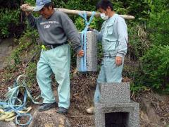 字彫りの出来た墓誌の納品と、傾いた墓の直しを行いました。お世話様になりました