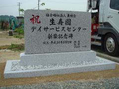 デイサービスセンターの竣工が近付、記念の碑の施工に行きました。ご注文から二週間しか時間が無かった為、製造から字彫りまで連休返上となりましたが、園長様、役員様方には大変喜んでいただけました。お世話様になりました。