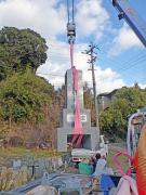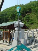 引き続いて、前に離れなかった先祖墓を設置しました。クランプで仏石を吊ってもビクともしません。夫婦墓と供養塔が据わり新墓地が完成しました。以前と比べますと場所も、日当たりも良いところになられました。有難うございました。23~24日