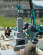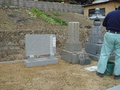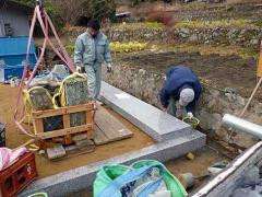 新市町から引き取りをしていた墓の設置を行いました。新たに巻き石が付きました。