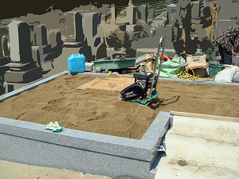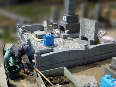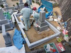 真砂入れを行い、玉垣を設置して墓の下回りを据えました。段々と形に成ってきました。