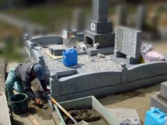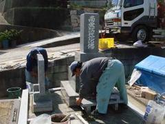 弊社で掃除を行っていた墓の設置と、細かい仕上げを行いました。完成後ご当家様の立会いのもと、納骨をさせていただきました。