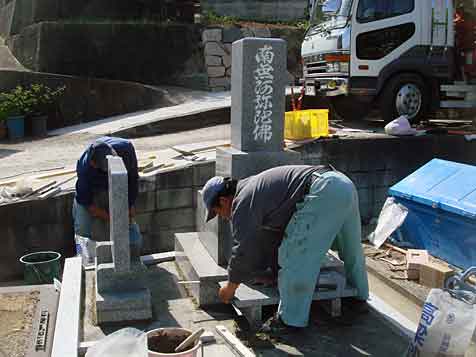 急な階段を上がる墓地です。大きい墓ではないのですが、久しぶりに担ぎました。有難うございました。