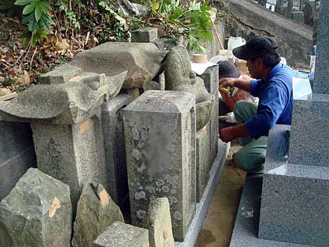 事故に遭われた墓の撤去と、代わりの墓の施工をしました。なんでも上から車が落ちてきたとのこと。運転者にお怪我も無く、墓地もサッパリとしました。
