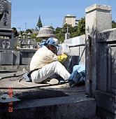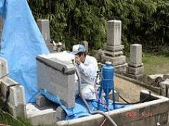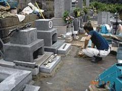 既存のお墓の据え変えと、掃除・ペンキ入れをして、