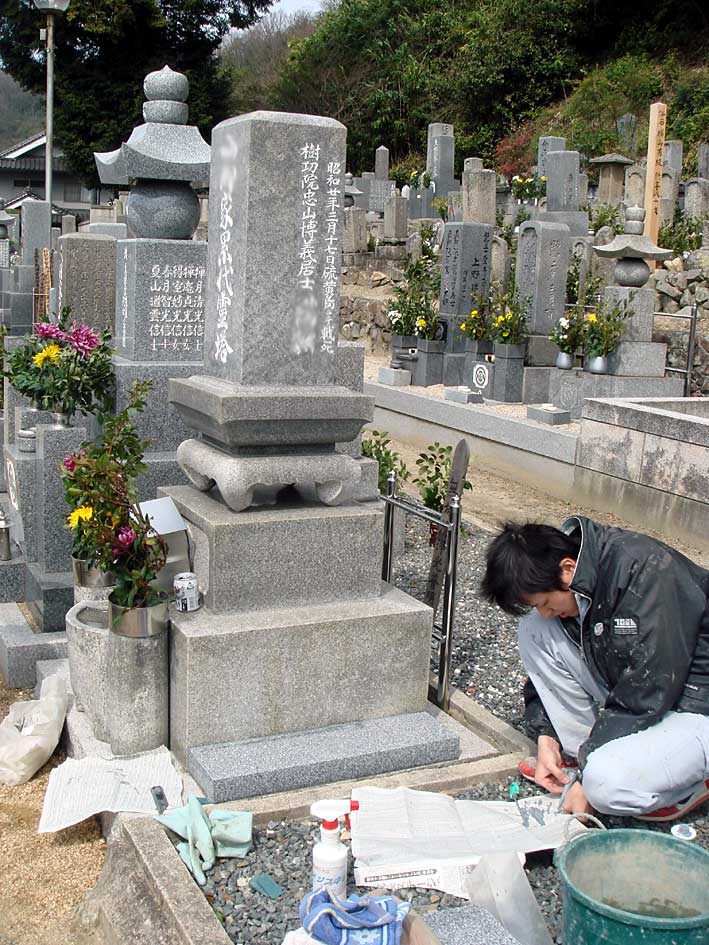 先日持ち出しをして、掃除した墓を納めに行きました。長年の汚れは頑固でしたが、字にペンキ入れをして綺麗になりました。後日、墓誌の製作をして設置する予定です。