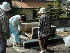 二基目の燈篭の解体をしました。下にいくほど頑丈です。