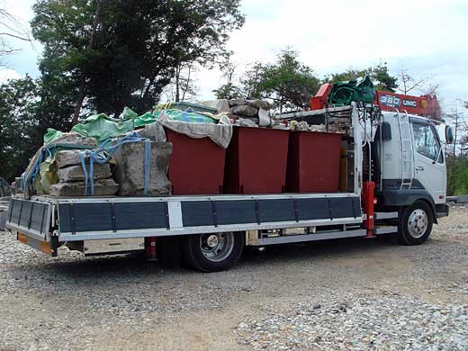 工事にて溜まっていた不用物とか、無縁になられるお墓等を預かっていただく為、不動院様の安置所に行きました。以前の仏石の場所は満杯で、次の区画へ安置させてもらいました。