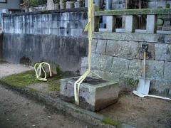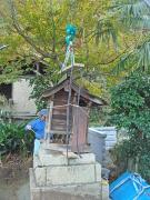 裏手にお祀りの鎮守社の台石の直しの為の解体を行いました。基礎杭を打ち組み直し迄出来ました。