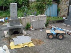雨も降り日延べになりましたが、新しい墓地が出来ましたので今度は旧墓地の整理に入ります。仏石は新しい墓地へ移っていただき、お骨上げをして、台石は旧墓地でまとめて設置しました。28~29日
