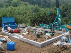 下回りが出来ましたので、墓の施工を行いました。右側が古い先祖の方が入られる供養塔です。