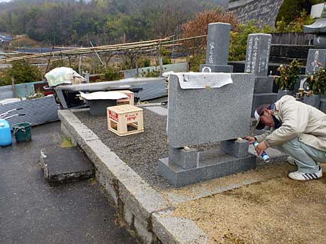 字彫りの出来た墓誌の納品と、傾いた墓の直しを行いました。お世話様になりました