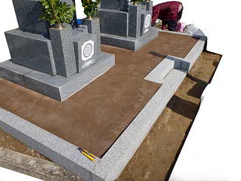 新規工事の場合ほぼ毎回の防草対策ですが、この度は既存の墓地にての施工です。内部はシートを敷き、通路はコンクリート仕上げです。お世話様になりました。