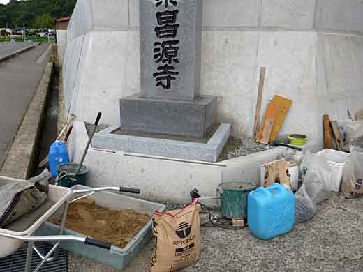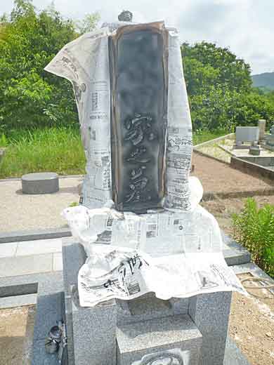 字彫りを終えた法名碑を納め、現場にて墓のペンキ入れを行いました。